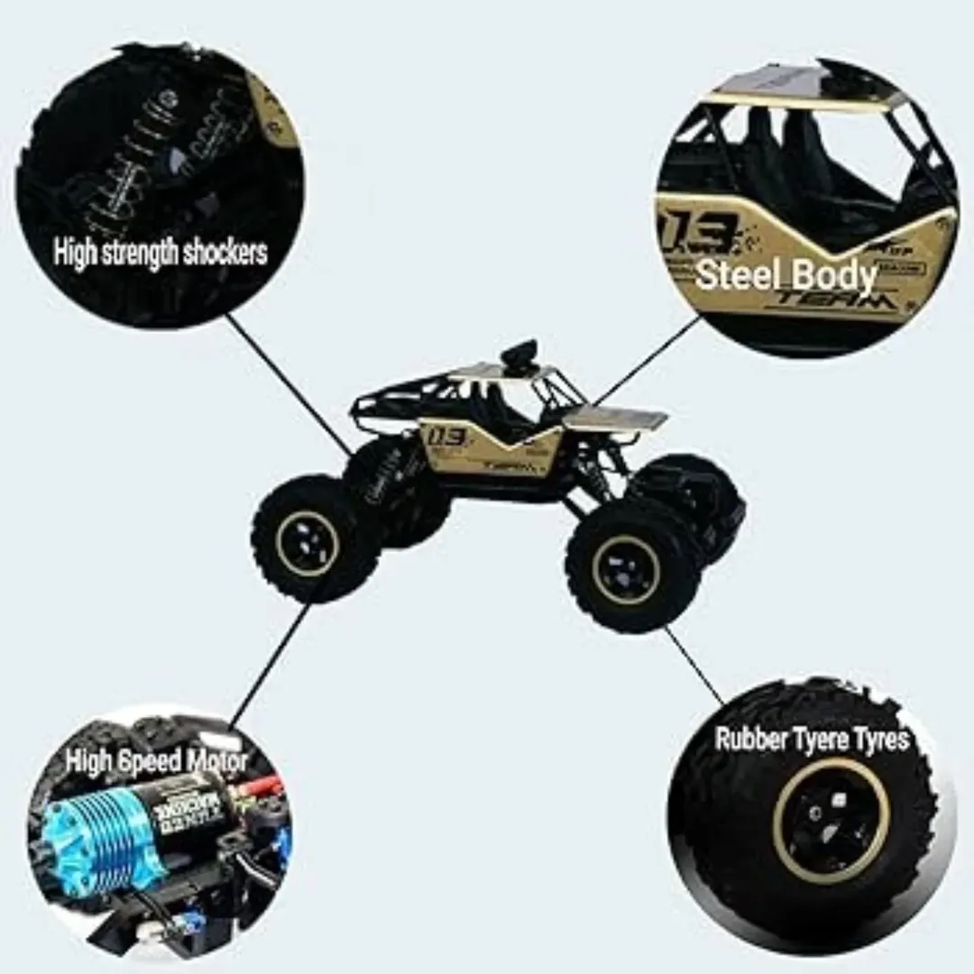 ماشین کنترولی آفرود با بدنه فولادی و تایرهای کائوچو. دارای دسته کنترل خلبانی.